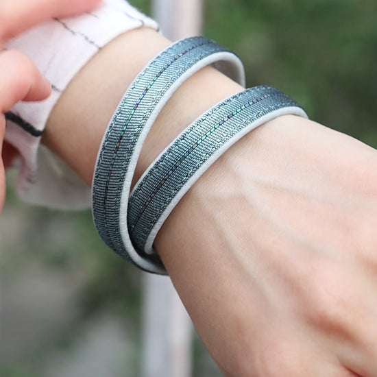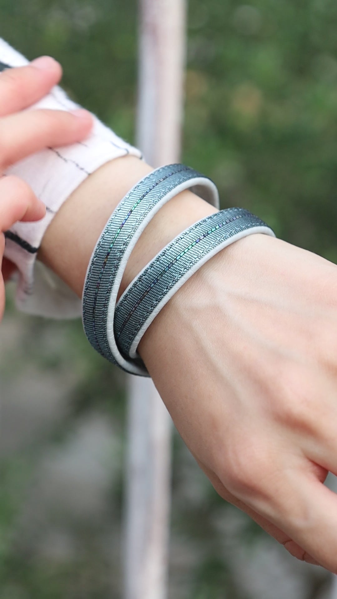 螺鈿織工芸帯の技法を駆使したマザーオブパールの輝く生地に世界最高品質のトリヨンレザーを併せ、日本の確かな縫製技術で完成させました。留め具にはマグネットバックルを採用。