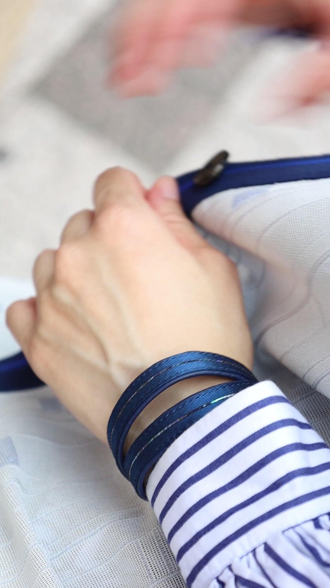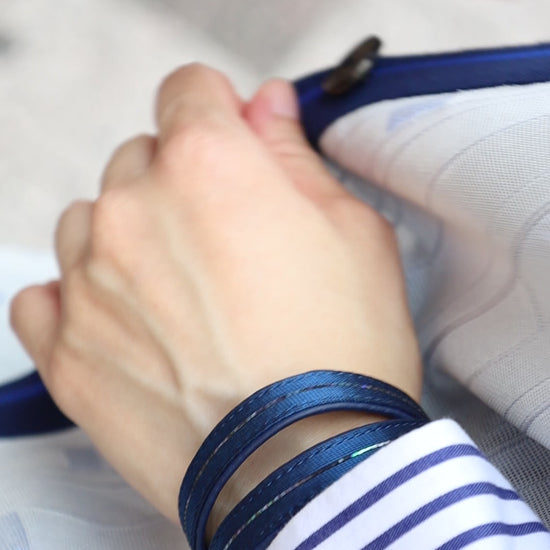 螺鈿織工芸帯の技法を駆使したマザーオブパールの輝く生地に世界最高品質のトリヨンレザーを併せ、日本の確かな縫製技術で完成させました。留め具にはマグネットバックルを採用。