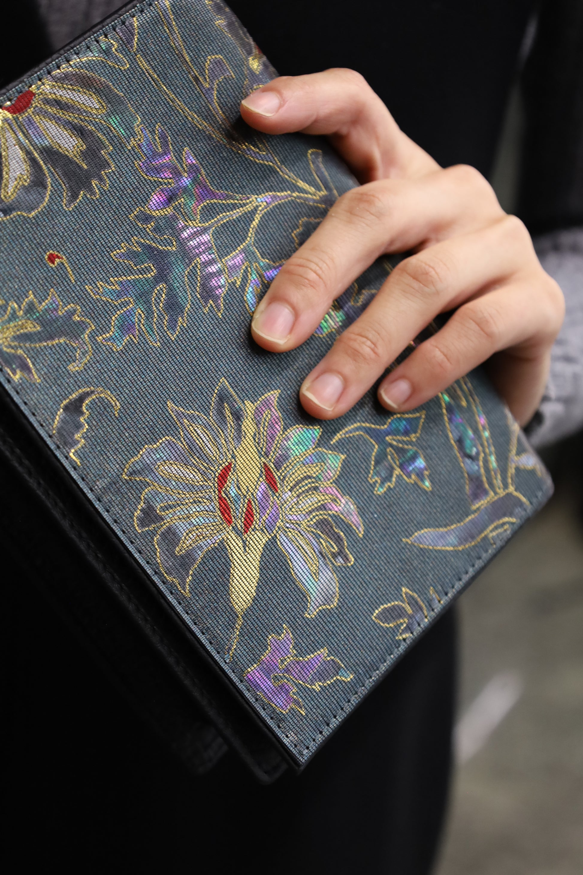 布の宝石とも称されるTAMIYA RADENの螺鈿織を贅沢に施したラグジュアリーなアイテムです。数多くの有名メゾンに提供してきたその技術をぜひ身近に。